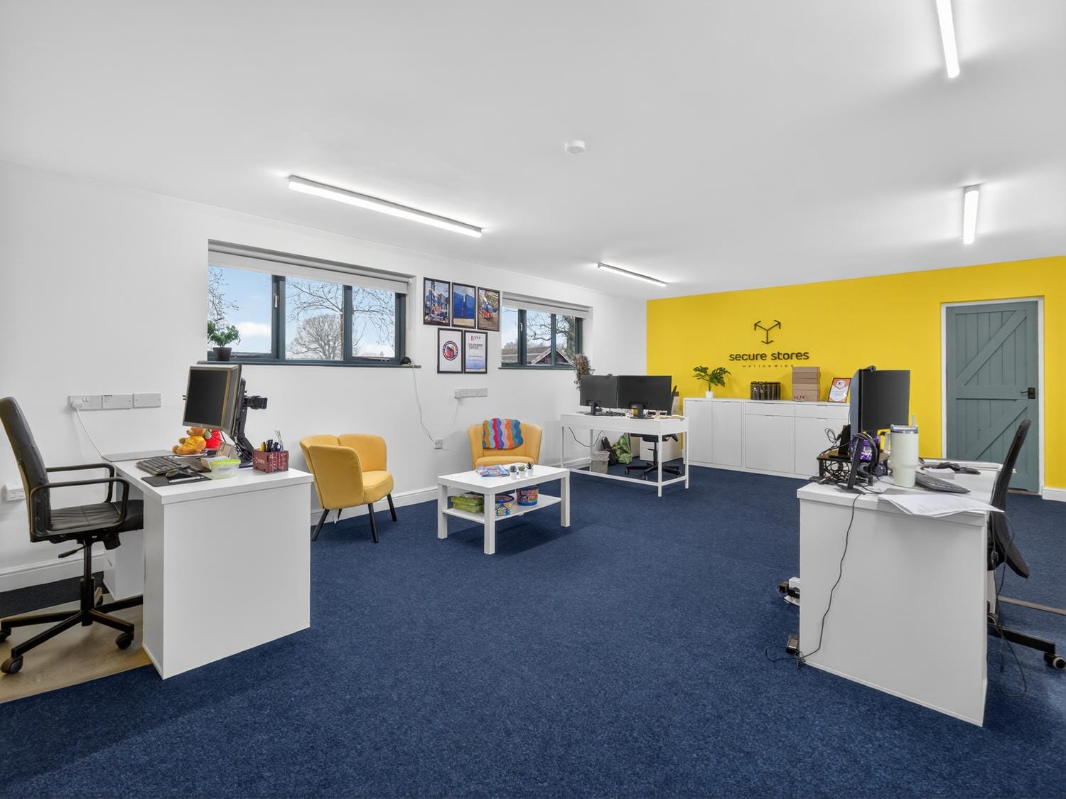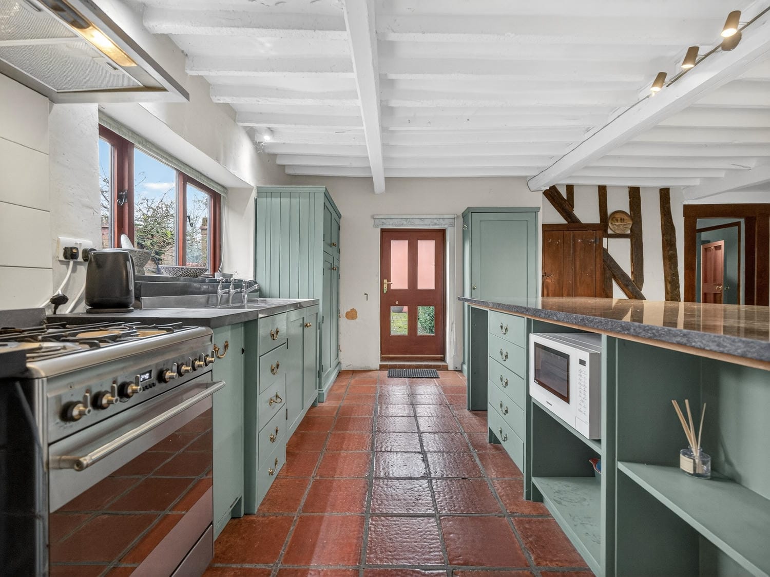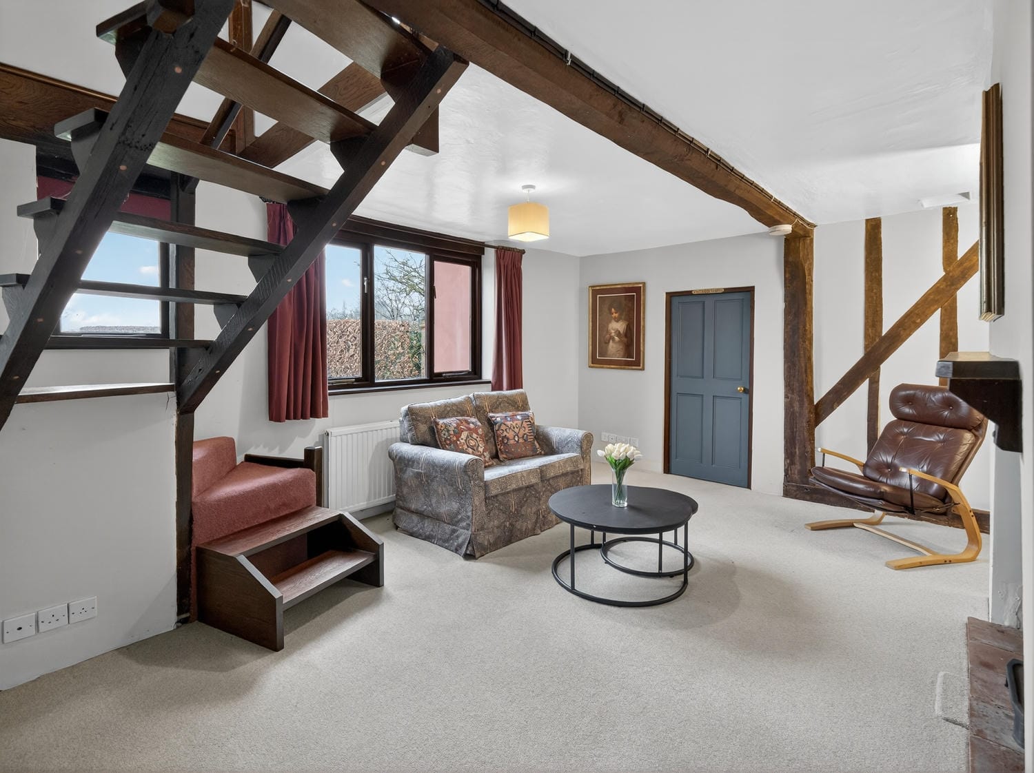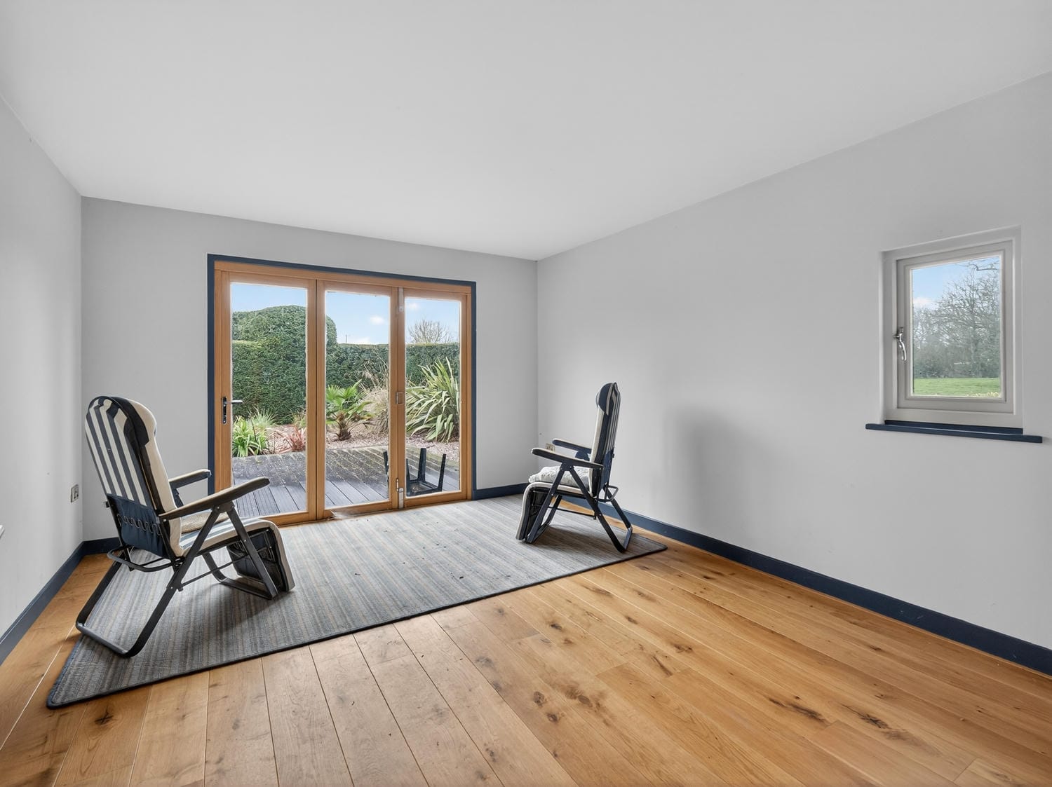 The garden house includes a kitchenette and connects via glazed link to a private Mediterranean-style courtyard. It suits home working, consulting space or further rental use. Access to the A140 supports commercial flexibility.